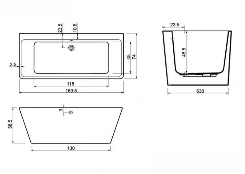Cada baie freeestanding ( tip insula ) cu dimensiunea 169 x 74 cm.