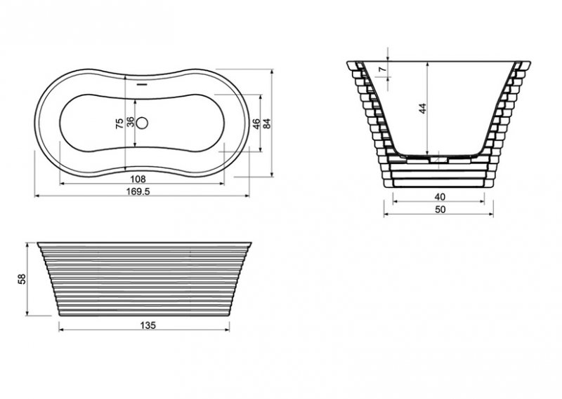 Cada baie freeestanding ( tip insula ) cu dimensiunea 169 x 84 cm.