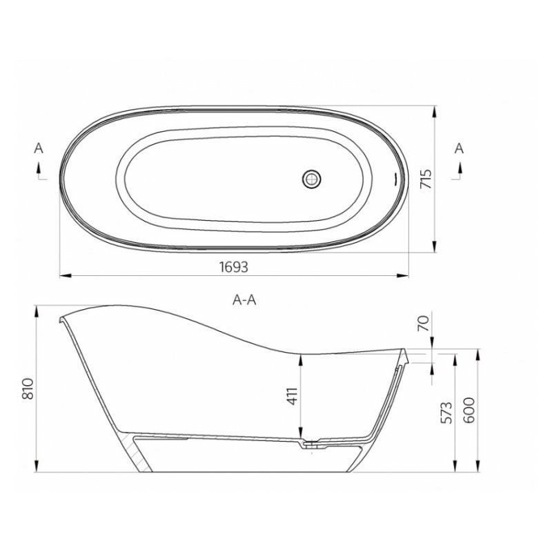 Cada baie freestanding cu dimensiunea 170x72cm.
