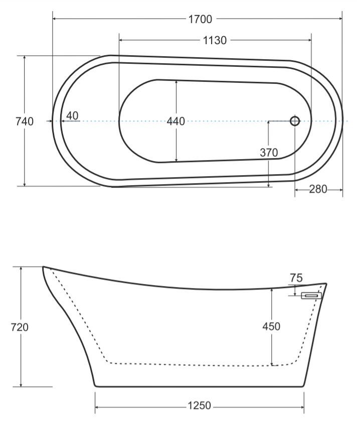 Cada baie freeestanding ( tip insula ) cu dimensiunea 170 x 74 cm.