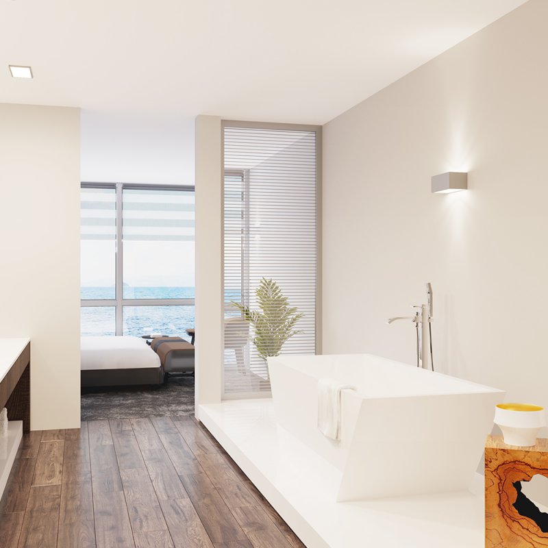 Cada baie freeestanding ( tip insula ) cu dimensiunea 170 x 74cm.