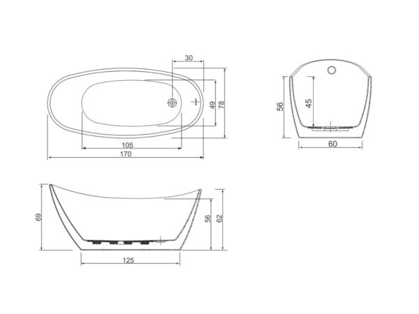 Cada baie freeestanding ( tip insula ) cu dimensiunea 170 x 78 cm.