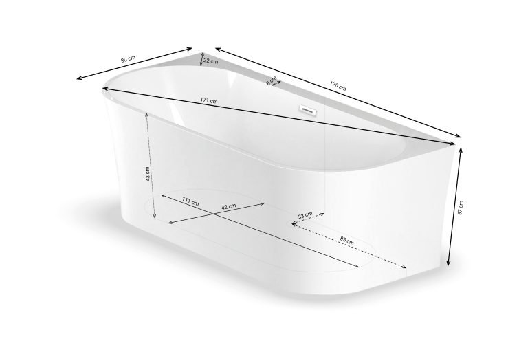 Cada baie freeestanding ( tip insula ) cu dimensiunea 170 x 80 cm.