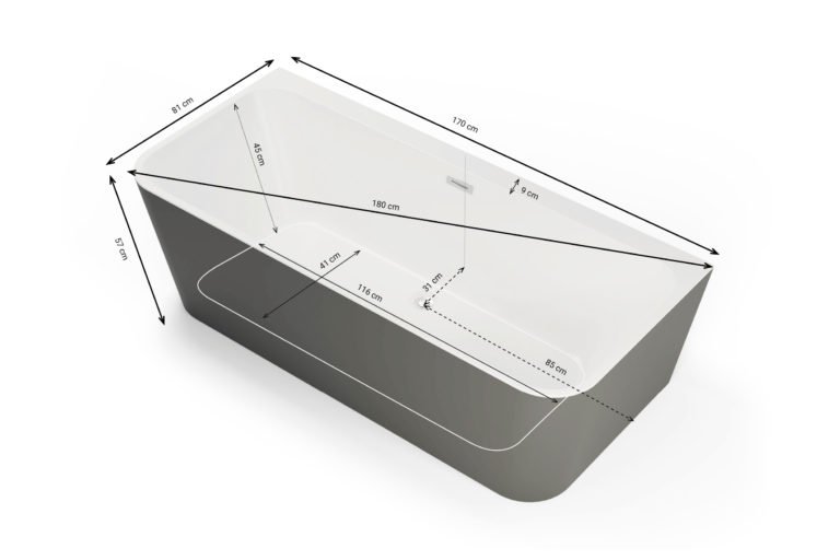 Cada baie freeestanding ( tip insula ) cu dimensiunea 170 x 81 cm.