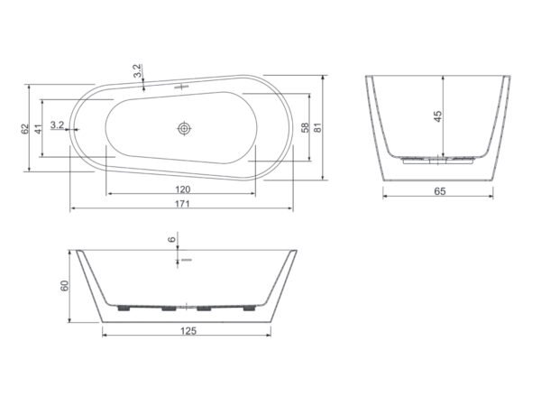Cada baie freeestanding ( tip insula ) cu dimensiunea 171 x 81 cm.