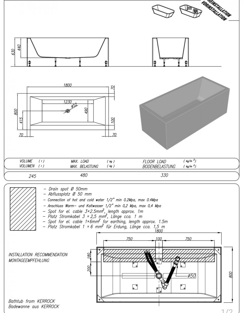 Cada baie freestanding cu dimensiunea 180x80cm.