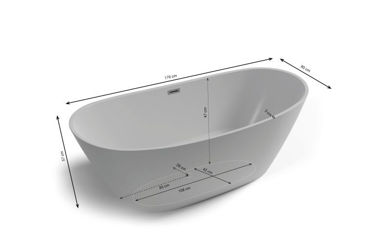 Cada baie freeestanding ( tip insula ) cu dimensiunea 170 x 80 cm.