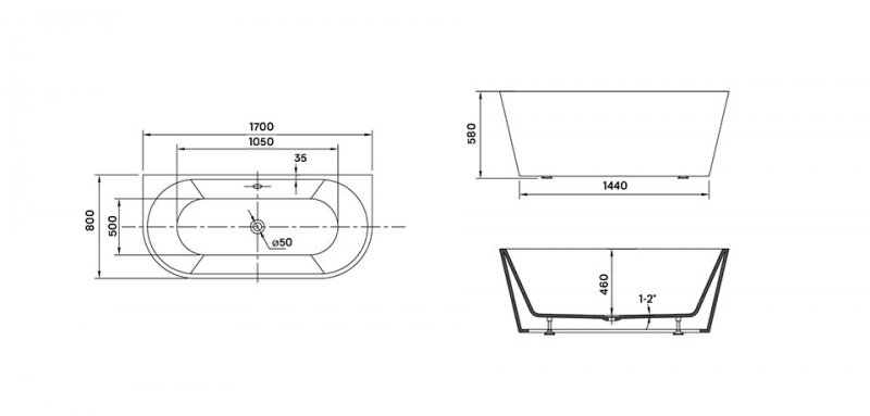 Cada baie freeestanding ( tip insula ) cu dimensiunea 170 x 80 cm.