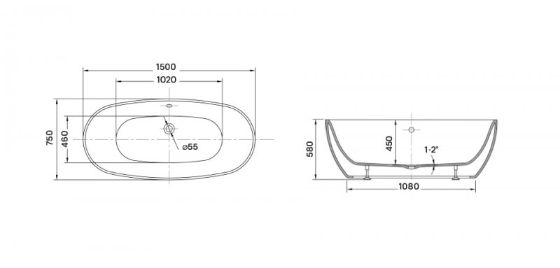 Cada baie freeestanding ( tip insula ) cu dimensiunea 150 x 75 cm.