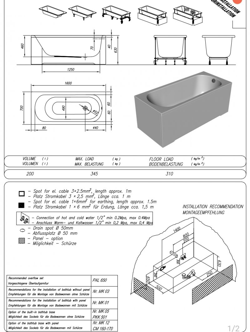 Cada baie rectangulara cu dimensiunea 120 x 70 cm.