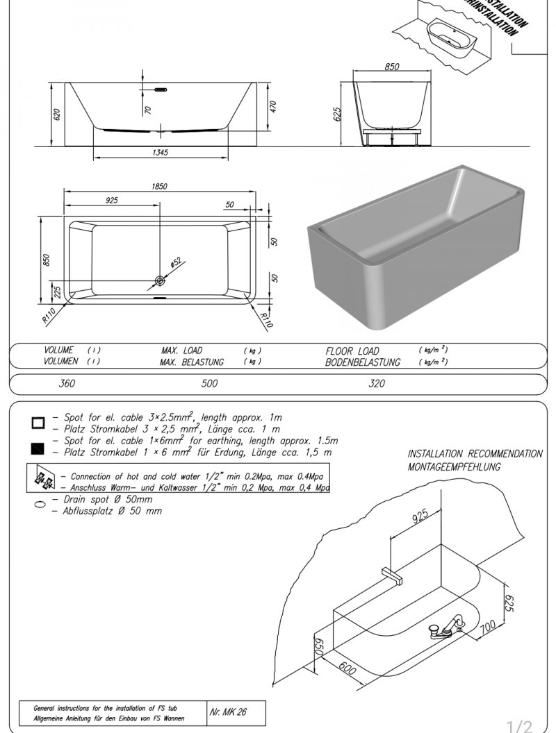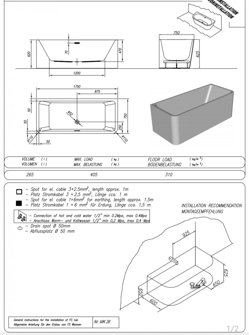Cada baie dreptunghiulara cu dimensiunea 175 x 75 cm.