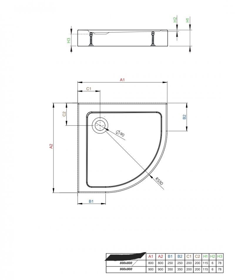 Cadita de dus cu dimensiunea de 80x80 cm