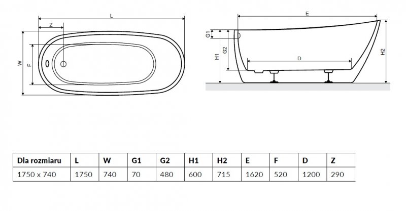 Cada baie freeestanding ( tip insula ) cu dimensiunea 175 x 78 cm.