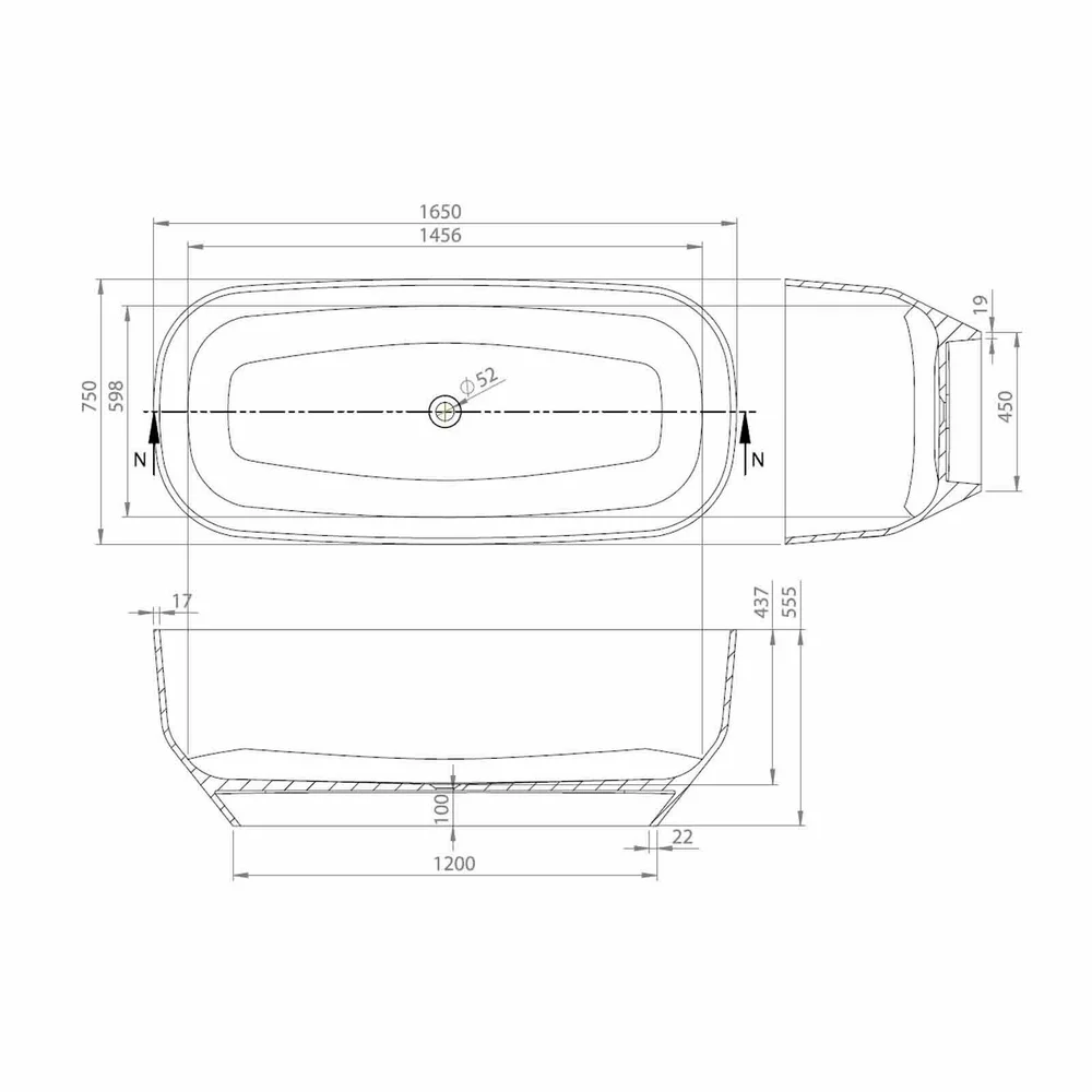 Cada baie freestanding cu dimensiunea 165x75cm.