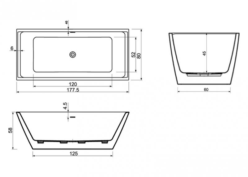 Cada baie freeestanding ( tip insula ) cu dimensiunea 177 x 80 cm.