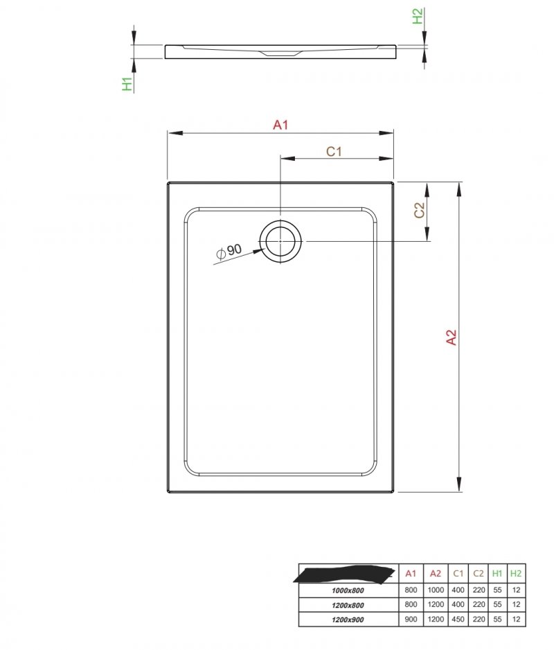 Cadita de dus dreptunghiulara cu dimensiunea 100x80 cm