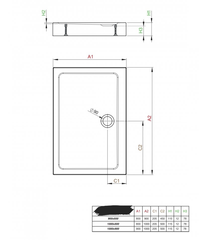 Cadita de dus dreptunghiulara cu dimensiunea 90x80 cm