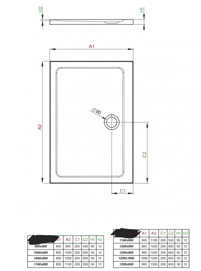 Cadita de dus dreptunghiulara cu dimensiunea de 90x80 cm