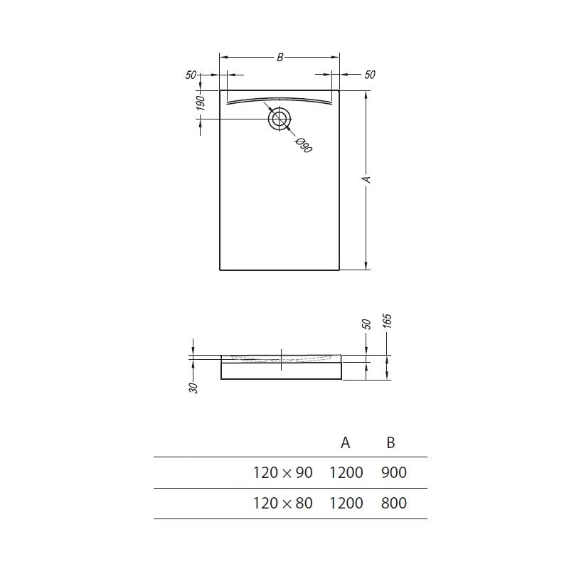 Sifonul (∅90 mm) se comanda separat