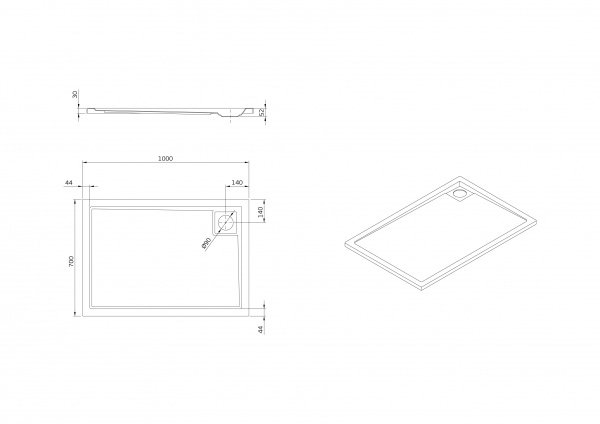 Cadita dus dreptunghiulara cu inclinare spre colt cu dimensiunea 1400x700 mm