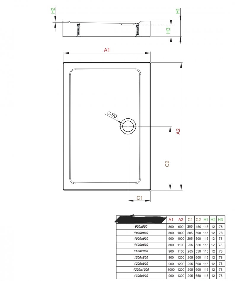 Cadita de dus dreptunghiulara cu dimensiunea 90x80 cm