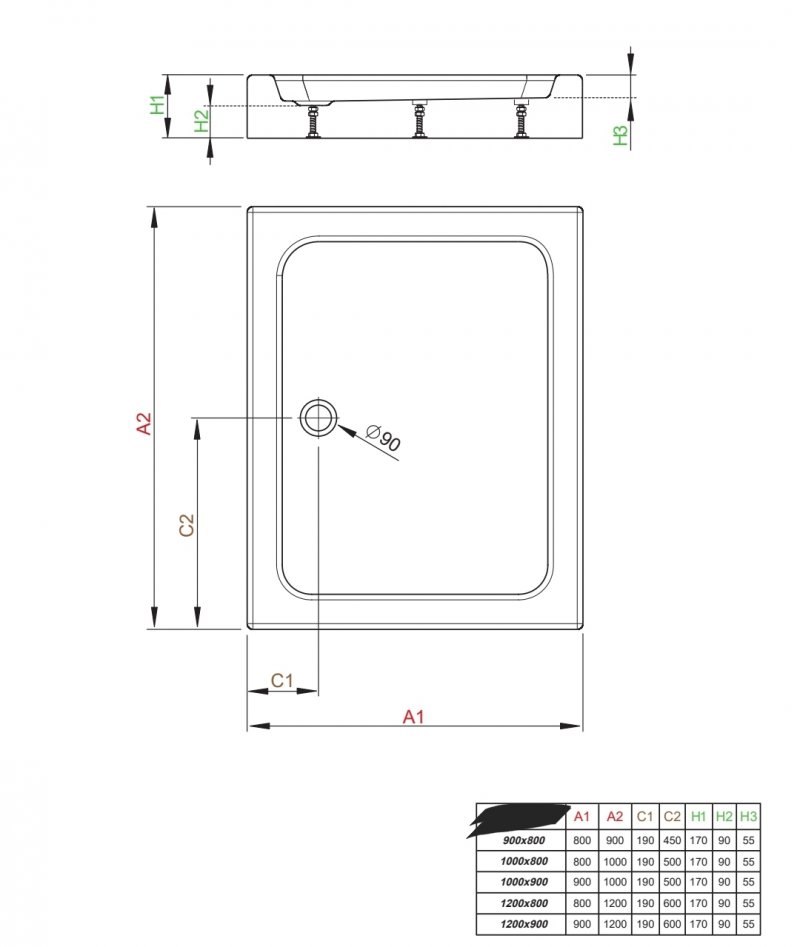 Cadita de dus dreptunghiulara cu dimnensiunea de 90x80 cm