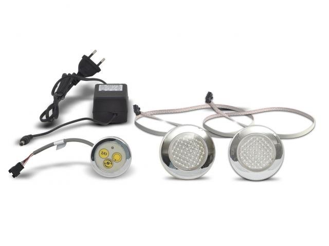 Pentru un efect mai placut si puternic, un design mai aparte sau pentru distractia copiilor putem monta doua corpuri de cromoterapie.