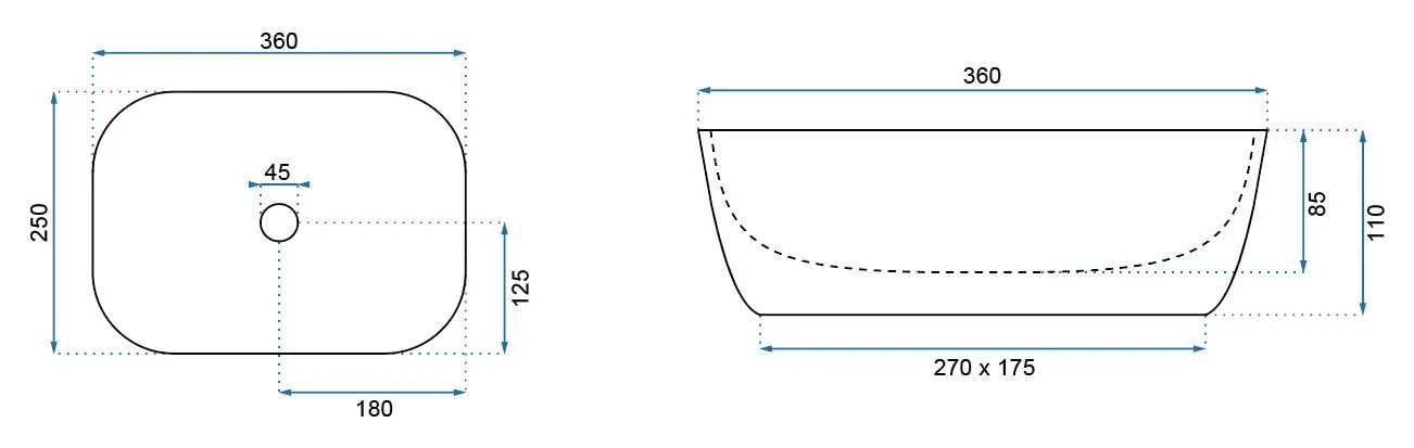 Lavoar oval pe blat cu dimensiunea de 36x25 cm