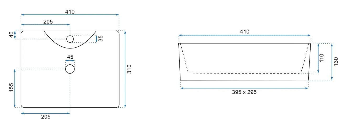 Lavoar dreptunghiular pe blat cu dimensiunea de 41x31 cm
