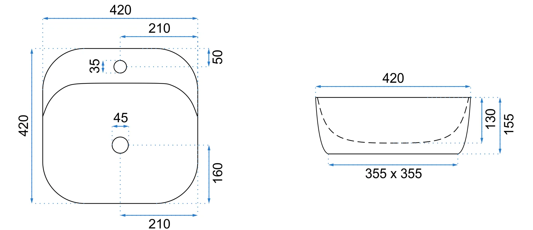 Lavoar patrat pe blat cu dimensiunea de 42,5x42,5 cm