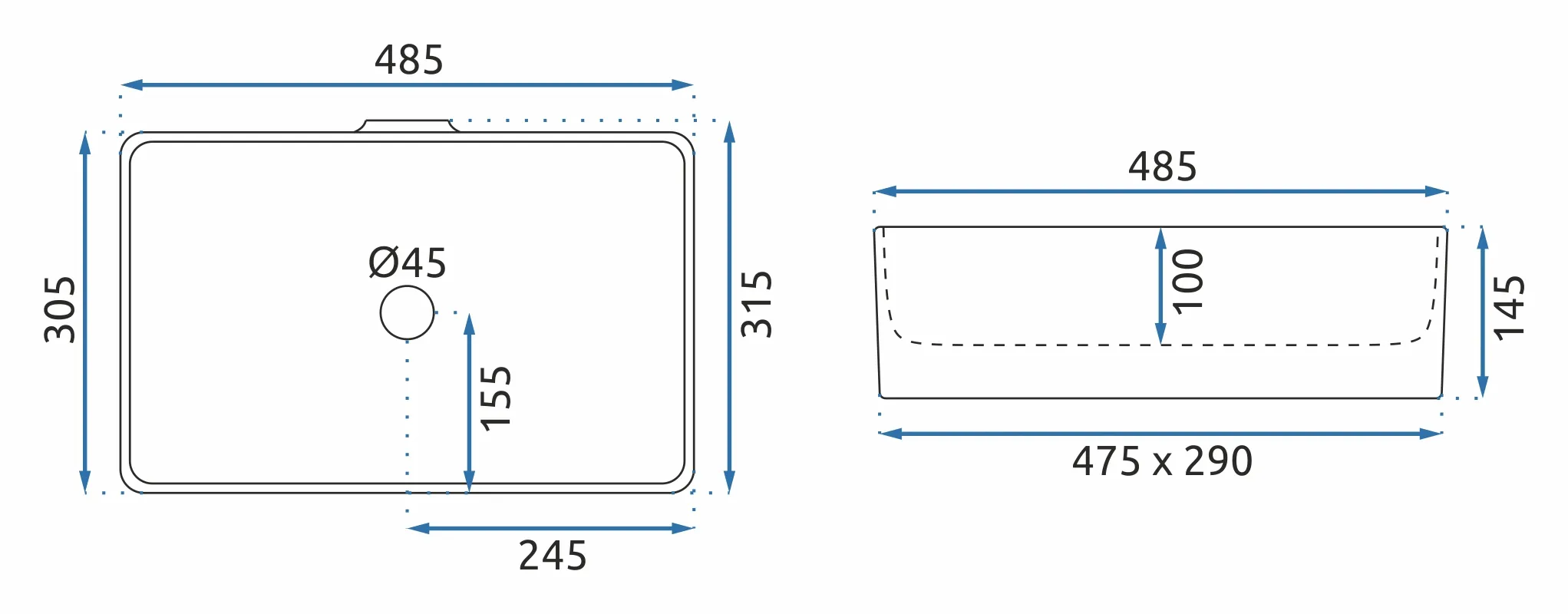 Lavoar dreptunghiular pe blat cu dimensiunea 48,5 x30,5 cm