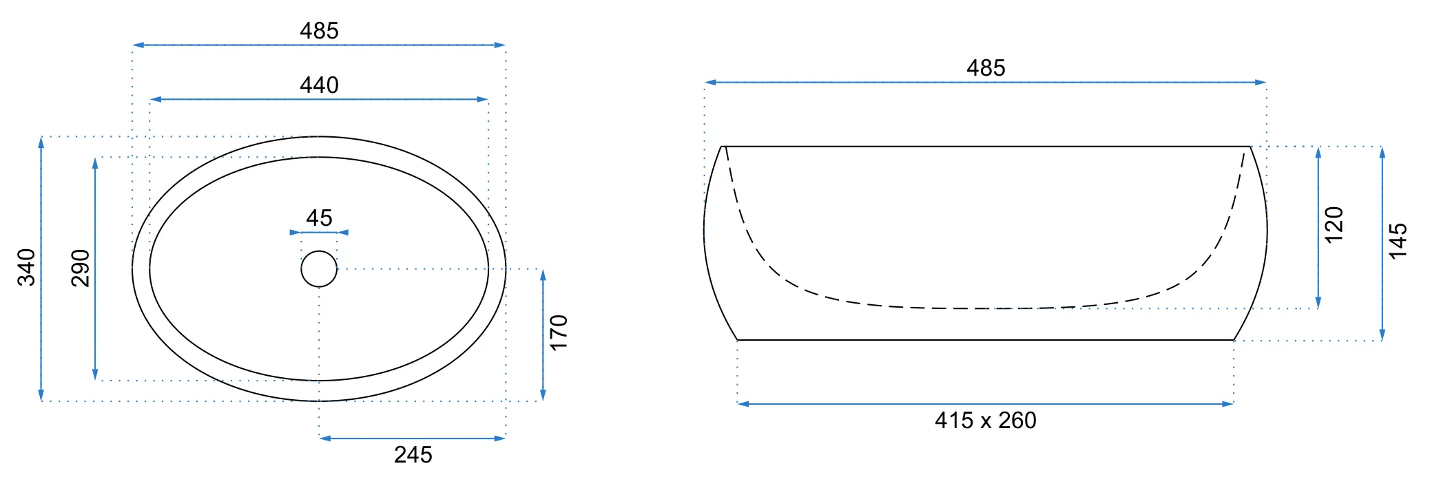 Lavoar oval pe blat cu dimensiunea de 48,5x34 cm