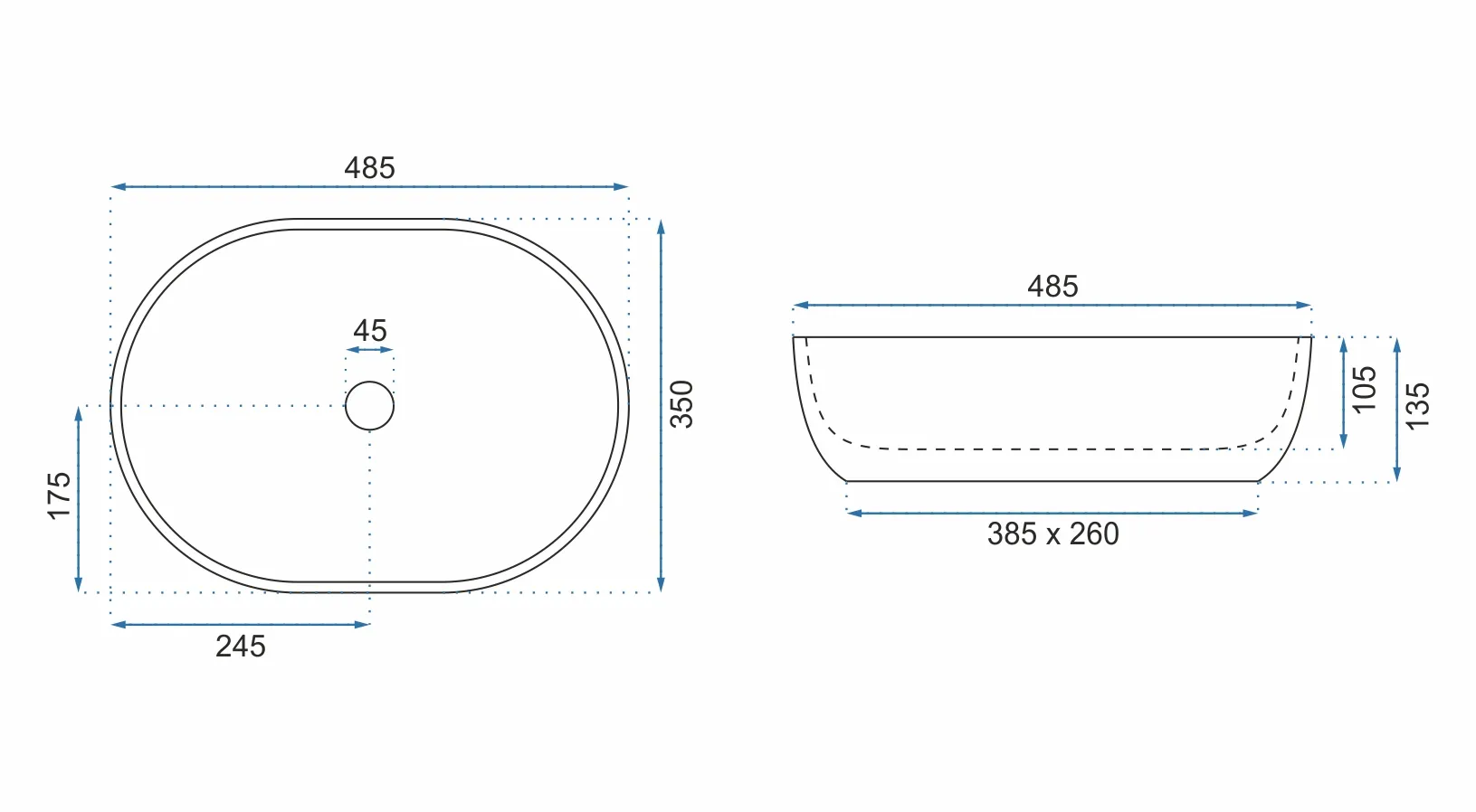 Lavoarul este adaptat pentru a fi montat pe un blat sau pe un dulap. A fost realizat din ceramică sanitară de înaltă calitate.