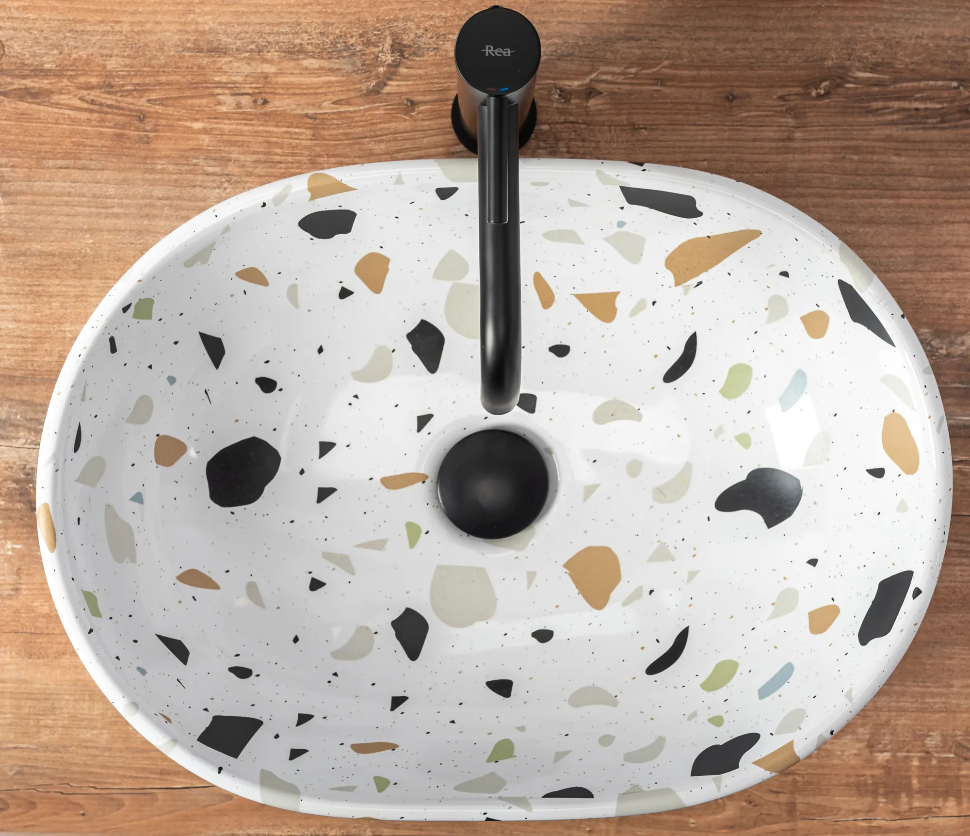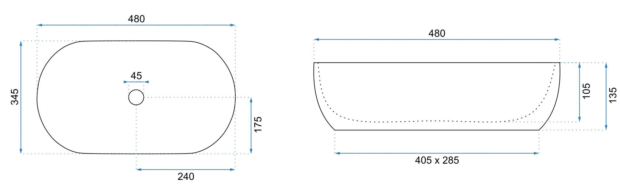 Lavoar pe blat oval cu dimensiunea de 48x45,5 cm