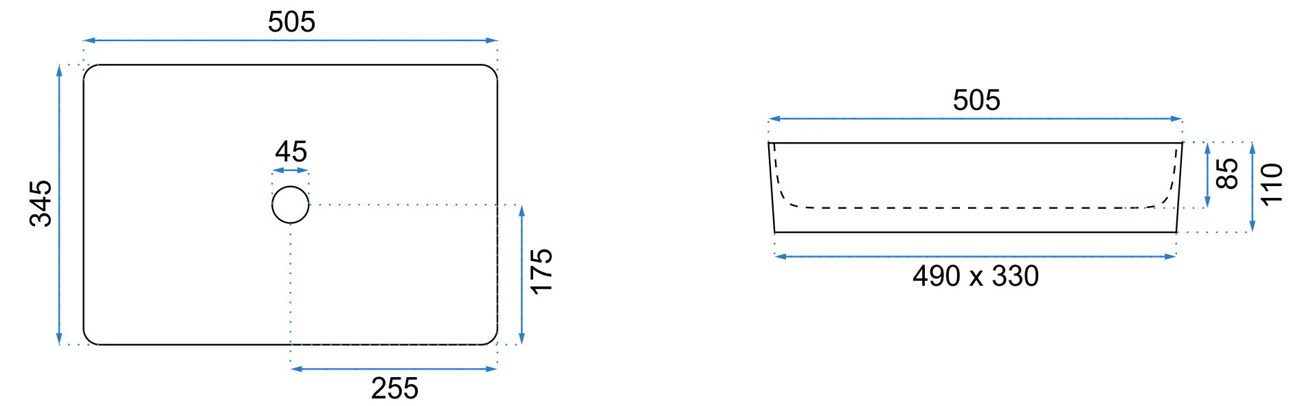 Lavoar pe blat dreptunghiular cu diemnsiunea de 50,5x34 cm