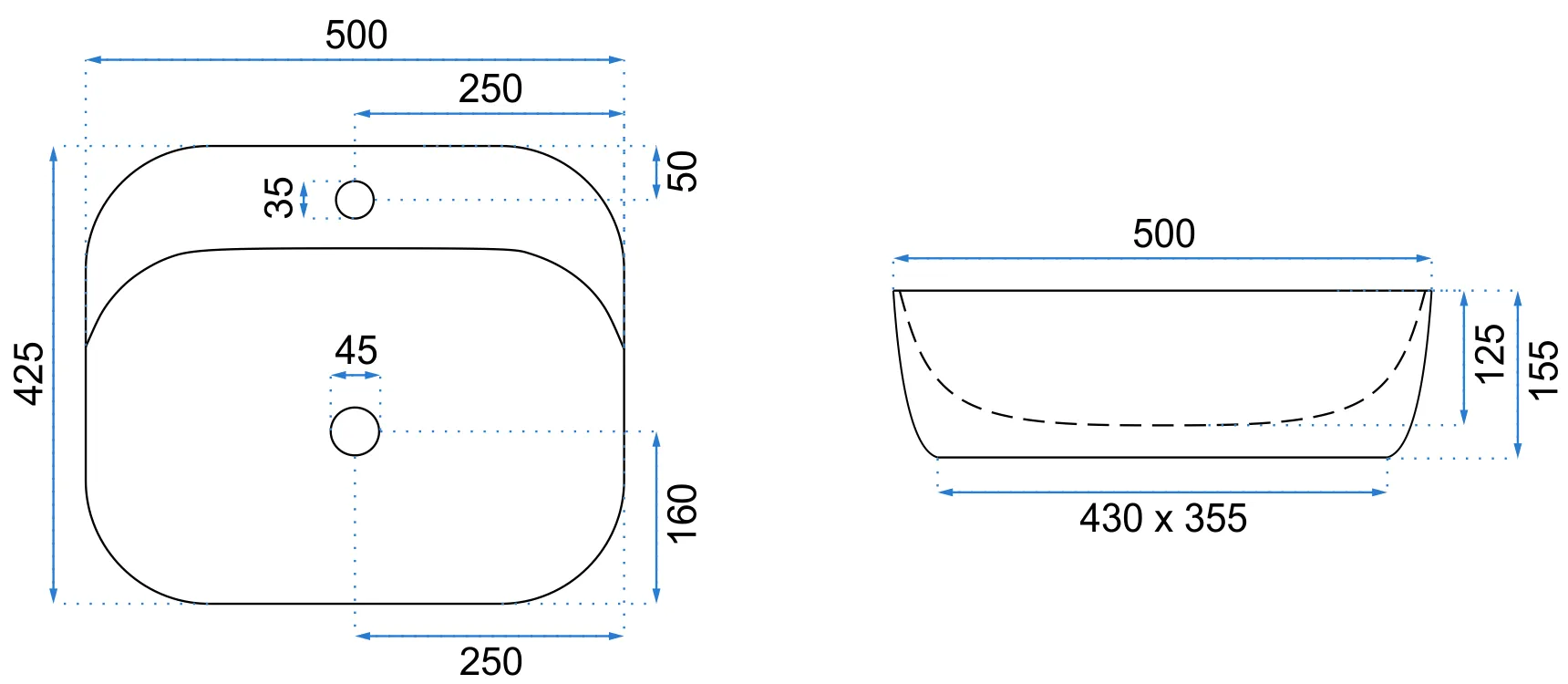 Lavoar dreptunghiular pe blat cu dimensiunea de 50x42,5 cm