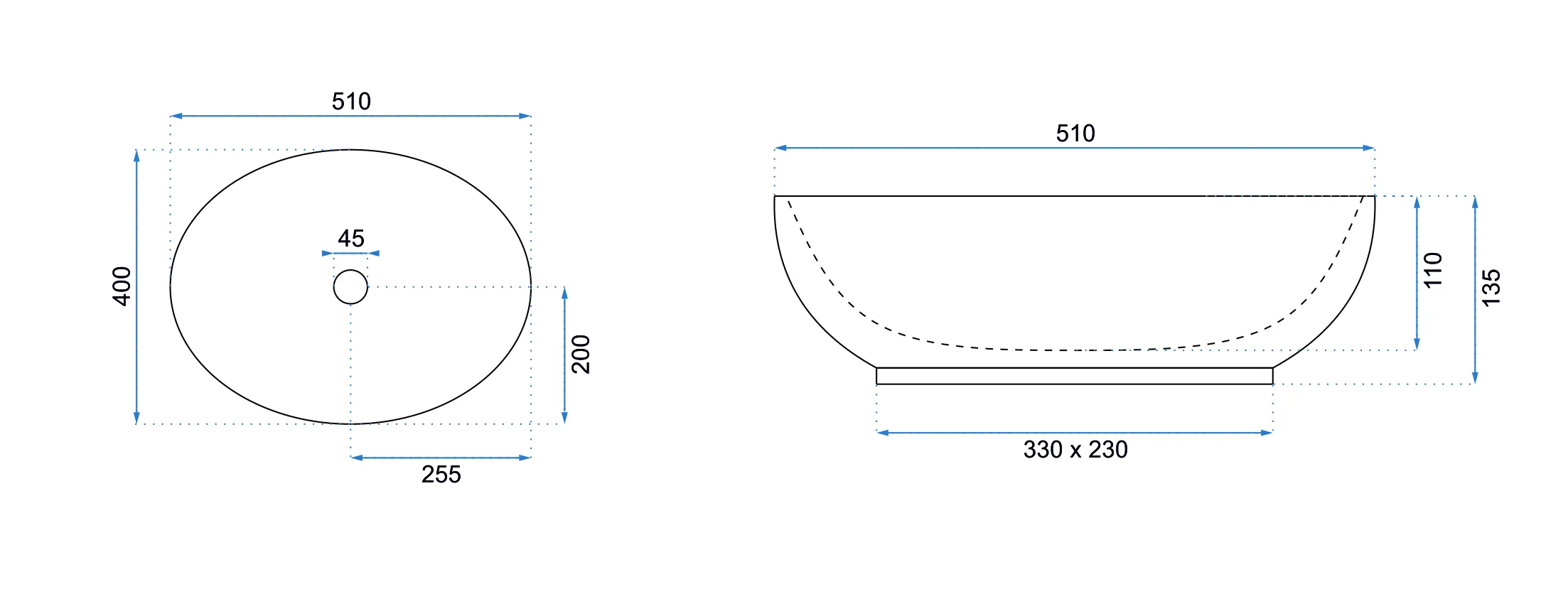 Lavoar oval pe blat cu dimensiunea de 51x40 cm