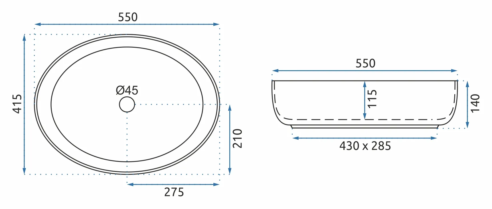 Lavoar oval pe blat cu dimensiunea de 55x41,5 cm