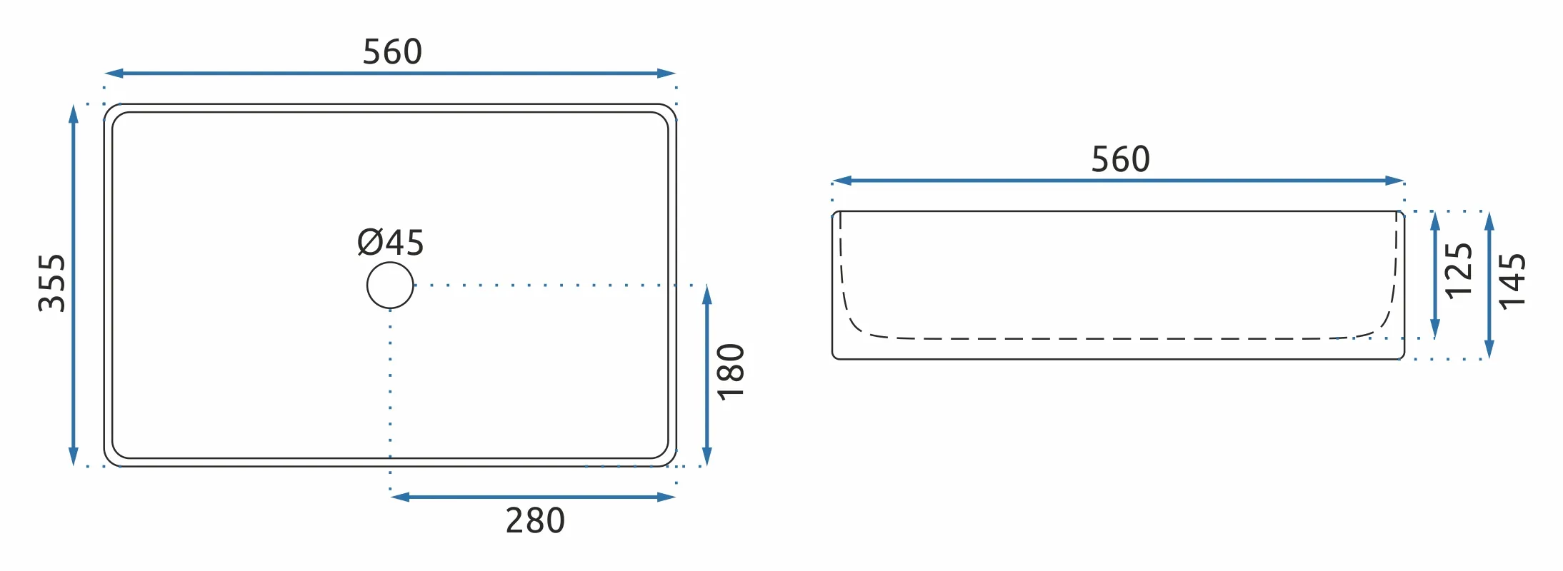 Lavoar dreptunghiular pe blat cu dimensiunea de 56x35,5 cm