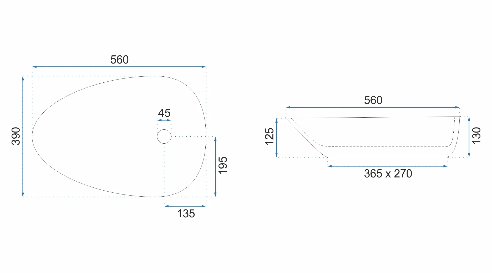 Lavoar oval pe blat cu dimnesiunea de 56x39 cm