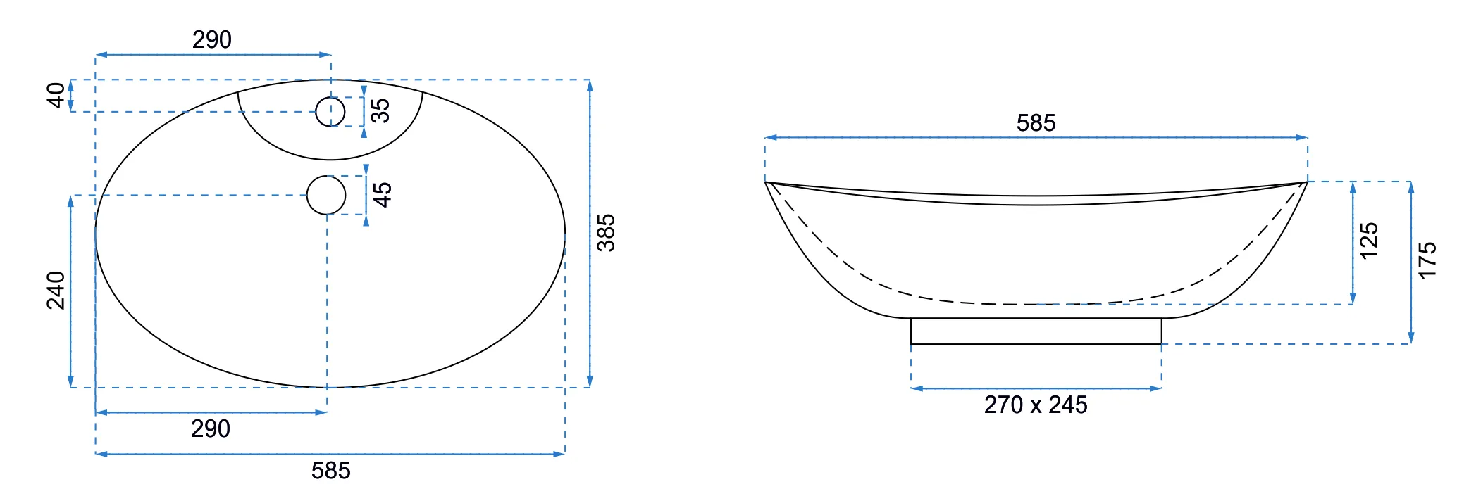 Lavoar oval pe blat cu dimensiunea de 58,5x38,5 cm