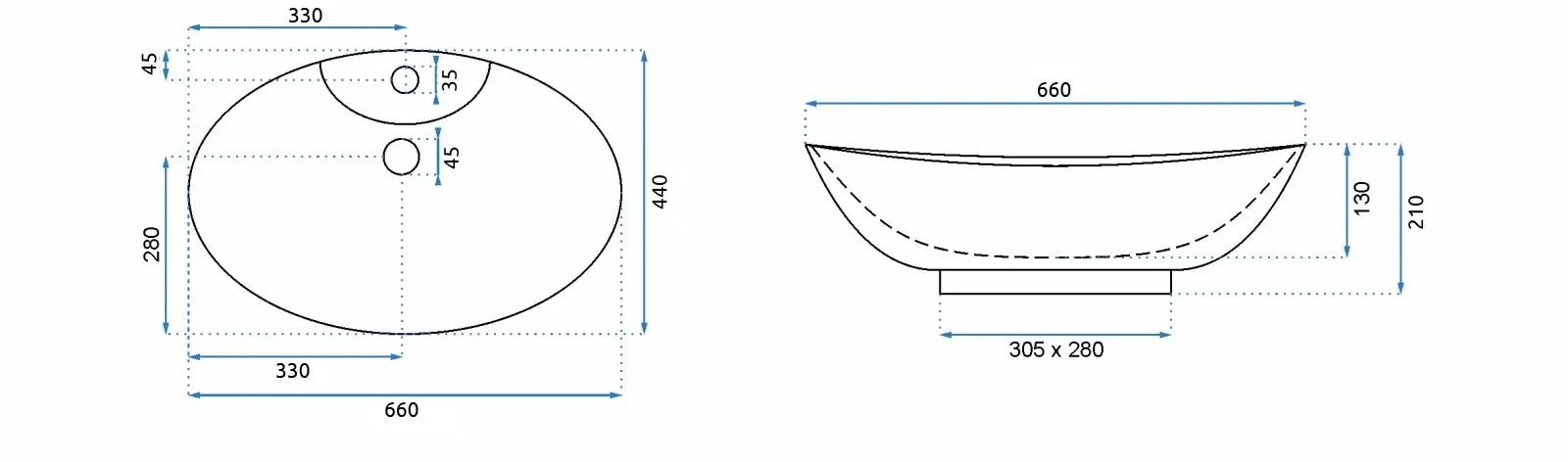 Lavoar oval pe blat cu dimensiunea de 58,5x39 cm