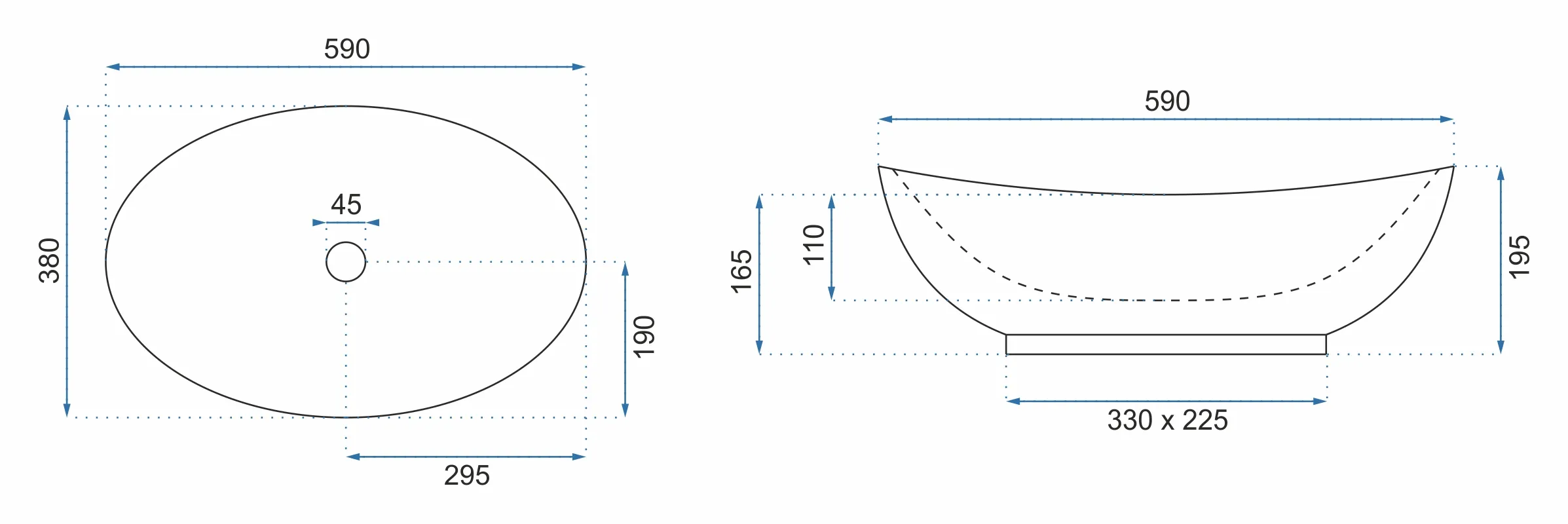 Lavoar oval pe blat cu dimensiunea de 59x38 cm