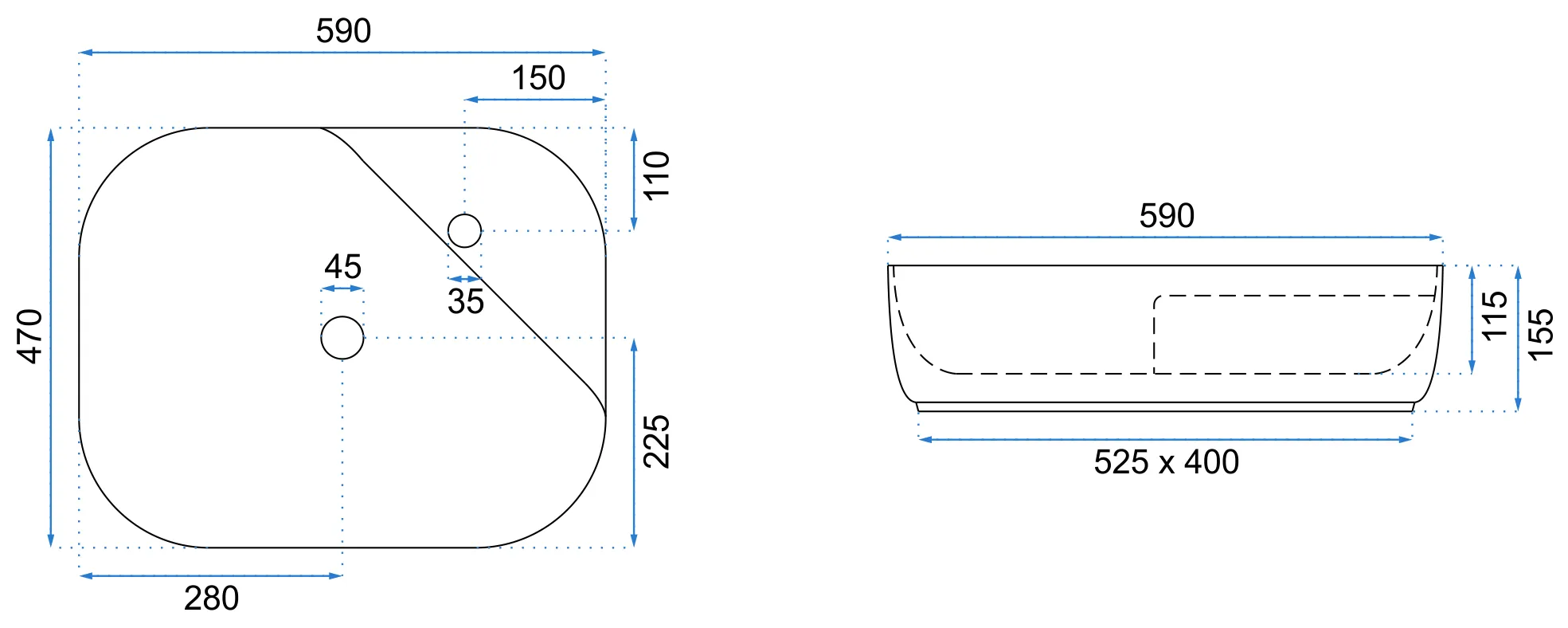 Lavoar oval pe blat cu dimensiunea de 59x47 cm