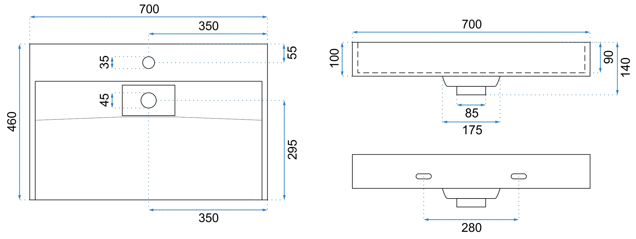 Lavoar dreptunghiular pe blat cu dimeniunea de 70x46 cm