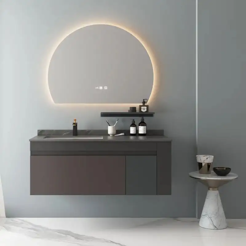 Set mobiler baie suspendat, 3 piese, 110cm, maro, gri, mat